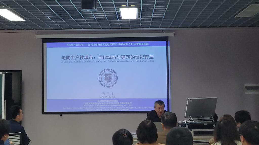 4月14日上午,張玉坤教授以《走向生產性城市——當代城市與建筑的世紀轉型》為主題做了學術講座。講座內容具有非常強的前瞻性。張教授以當前人類發展面臨的挑戰為背景,闡述了生產性城市的建設思路與策略、探索與思考,分享了團隊與生產性城市相關的科研課題、科研成果和人才培養等情況。