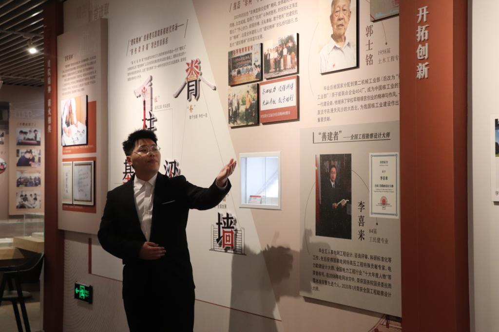 初賽現場,選手們熟練的向現場評委和觀眾展示VR校史館的操作技巧和區域板塊,校史館內四個展廳分別為“善建路——與共和國一起成長”“春潮起——艱苦地區辦學典范”“廣廈魂——共鑄建筑業‘黃埔’”“鴻鵠志——同心共筑‘建大夢’”,選手根據各自選擇的展廳逐一進行針對性講解,評委老師根據選手的表現開展逐一點評。