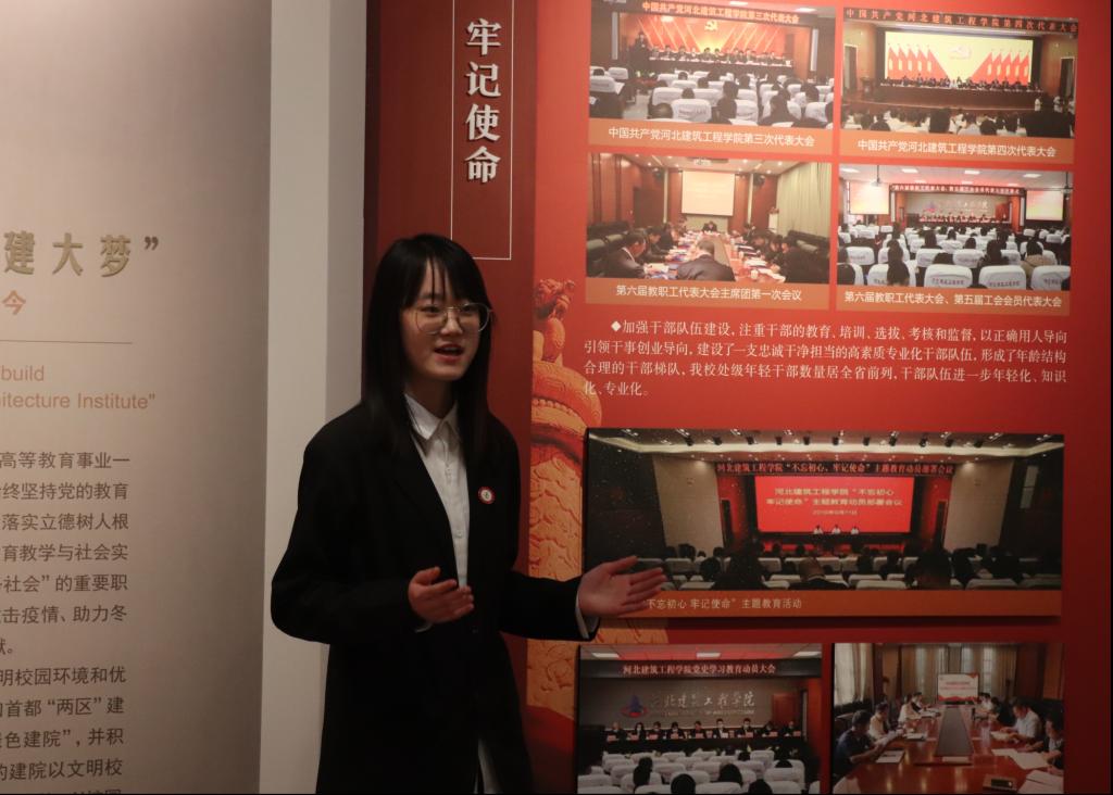 決賽現場,來自各年級的優秀選手們集結在校史館前,以飽滿的熱情和嚴謹的態度對待此次講解工作。評委老師以現場模擬來賓參觀的方式,帶領觀眾一起聆聽選手們的講解,共同感受建院人“投身建筑、報效祖國”的家國情懷。大賽緊緊圍繞校史育人主線,以校史講解為切口,鍛煉學生現場講解和臨場應變能力,進一步提升講解員“知校史、曉校情”的綜合素養和水平,營造出良好的知校愛校榮校氛圍。