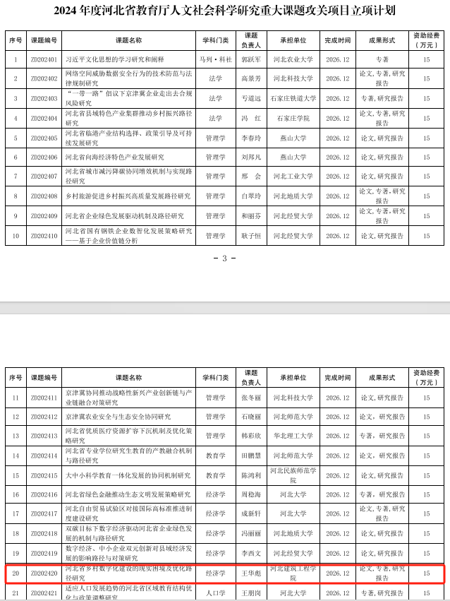 把科研做在美麗鄉(xiāng)村。馬克思主義學(xué)院王華彪教授團隊長期深耕“三農(nóng)”專題研究,獲批河北省科協(xié)“河北省數(shù)字鄉(xiāng)村研究基地”,今年1月,獲批省教育廳人文社會科學(xué)研究重大課題“河北省鄉(xiāng)村數(shù)字化建設(shè)的現(xiàn)實困境及優(yōu)化路徑研究”(ZD202420)并順利開題。3月,基地受張家口市委宣傳部委托,主持并參與了中宣部文明辦在張家口市組織的農(nóng)村精神文明及鄉(xiāng)賢建設(shè)情況的調(diào)研報告。4月25日,該基地多篇論文參與重慶市社科界第八屆鄉(xiāng)村振興學(xué)術(shù)年會并獲獎,其中《推進(jìn)新鄉(xiāng)賢回歸助力鄉(xiāng)村振興的實踐向路》《做實“引育用管留”五篇文章 構(gòu)筑人才集聚新高地》分獲論文一、三等獎,基地主要成員白明宇參加論壇并做主旨發(fā)言。