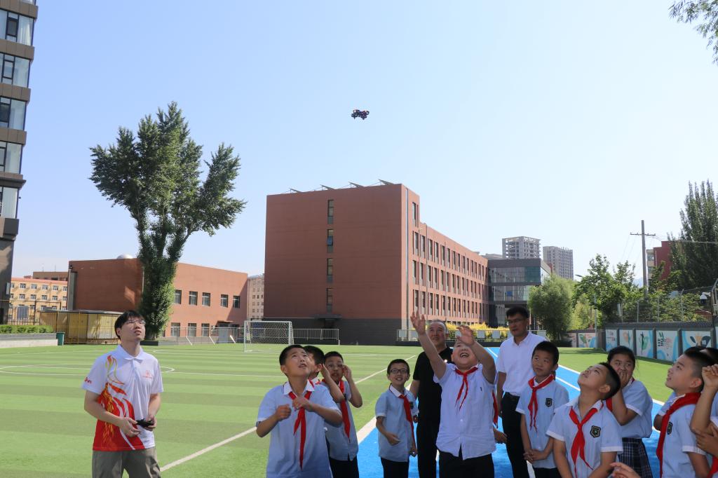 活動中,陳彥榮、何海洋分別致辭并向清河路小學(xué)捐贈無人機(jī)模型及科普書籍。志愿者們在科技教室與小學(xué)生們互動交流,科普無人機(jī)相關(guān)知識。在清河路小學(xué)操場上,志愿者進(jìn)行了無人機(jī)飛行展示,并耐心指導(dǎo)小學(xué)生進(jìn)行飛行操作。