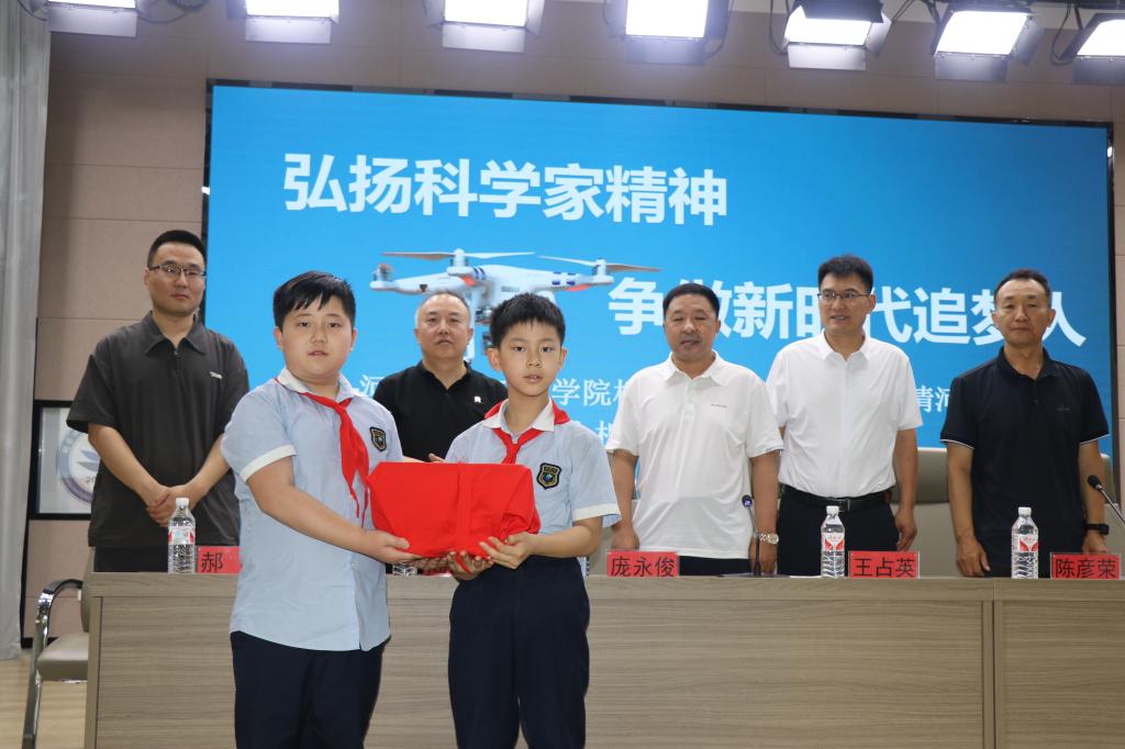 6月18日,機(jī)械工程學(xué)院院長王占英、科研處副處長龐永俊、華捷無人機(jī)科創(chuàng)中心負(fù)責(zé)人郝凱及志愿者團(tuán)隊一行來到橋西區(qū)清河路小學(xué),開展“弘揚科學(xué)家精神 爭做新時代追夢人”科普知識進(jìn)校園活動。橋西區(qū)教體科局副局長陳彥榮、橋西區(qū)教體科局電教站站長陳濤、河北華捷安防科技有限公司董事長周志杰、橋西區(qū)清河路小學(xué)校長何海洋參加了此次活動。