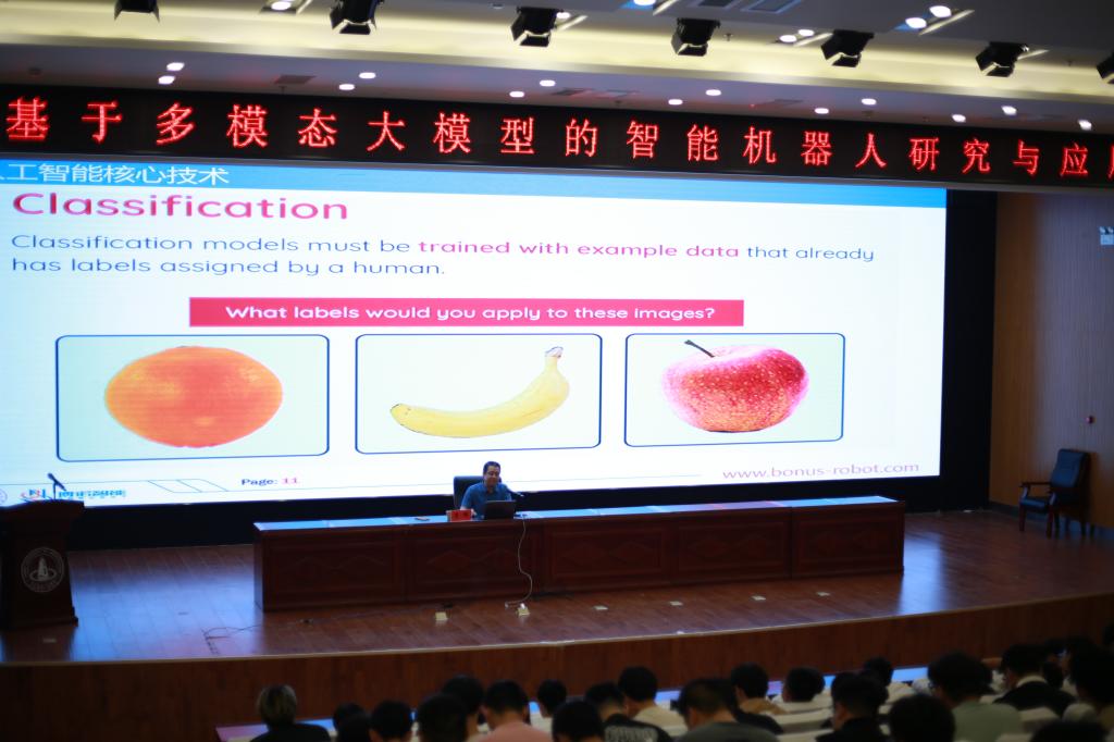 李輝教授以基于多模態大模型的智能機器人研究與應用為題,從“人工智能及其關鍵技術的發展”“多模態大模型及其發展前景分析”“智能機器人及其關鍵技術發展”“多模態大模型具身智能機器人研究”“具身智能機器人產業化前景分析”等五個方面深入展開,從人工智能時代的來臨、人工智能行業人才培養、多模態大模型應用場景、AI智能機器人關鍵技術等方面進行了系統、準確地分析與解讀。