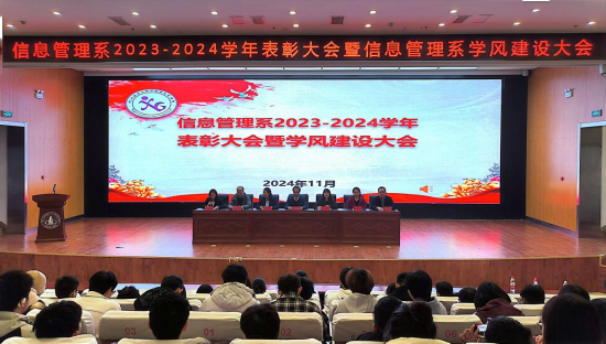 11月12日下午,信息管理系舉行2023-2024學年表彰大會暨學風建設大會。信息管理系黨總支書記杜占江、主任溫秀梅、副主任肖丹,教研室主任康麗峰、王海東和辦公室主任楊新明出席會議,大會由學工辦主任史海嫣主持,信息管理系全體師生300余人參加。