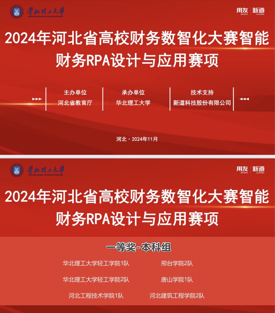 11月8日,由河北省教育廳主辦的2024年第四屆河北省高校財(cái)務(wù)數(shù)智化大賽——智能財(cái)務(wù)RPA設(shè)計(jì)與應(yīng)用賽項(xiàng)落幕,共有全省本科組56支代表隊(duì)參賽,經(jīng)過激烈角逐,由我校教師劉雅軍、劉曉東帶領(lǐng)的隊(duì)伍榮獲河北省一等獎(jiǎng),創(chuàng)造了學(xué)院在此項(xiàng)比賽中的最好成績。