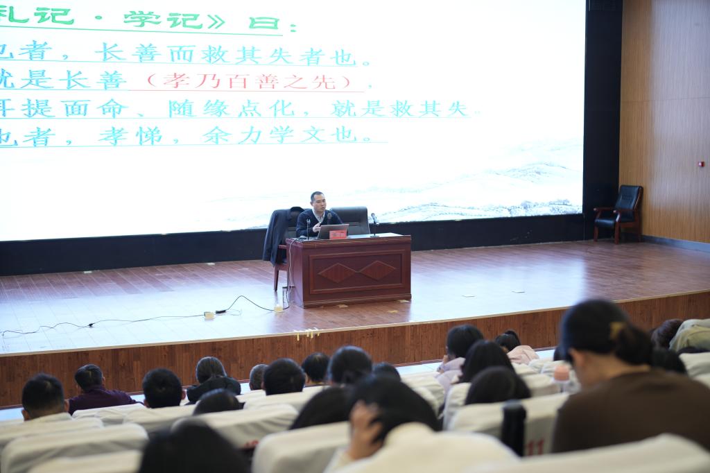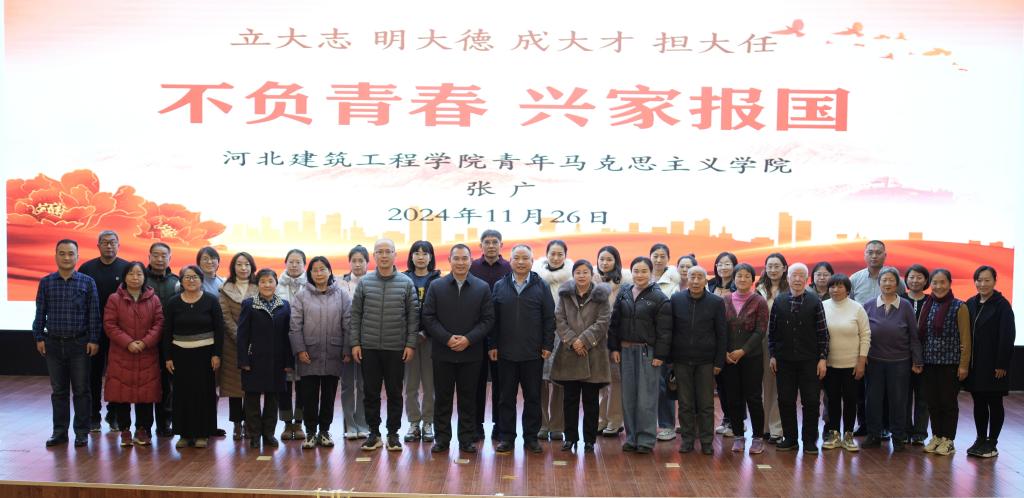 11月26日,河南省國學文化促進會副會長張廣應青年馬克思主義學院邀請,在學校新能源交流中心,以“不負青春 興家報國”為題為我校師生做了“家庭 家教 家風”大思政課專題講座。校團委書記兼青年馬克思主義學院執行院長李曉慶、土木工程學院黨委書記鐘曉春、體育部黨支部書記申靜,馬克思主義學院全體專兼職教師,我校24級部分專業學生,以及張家口慈善義工聯合會文明家風建設志愿者團隊等450余人參加了講座。講座由馬克思主義學院黨支部書記劉建軍主持。