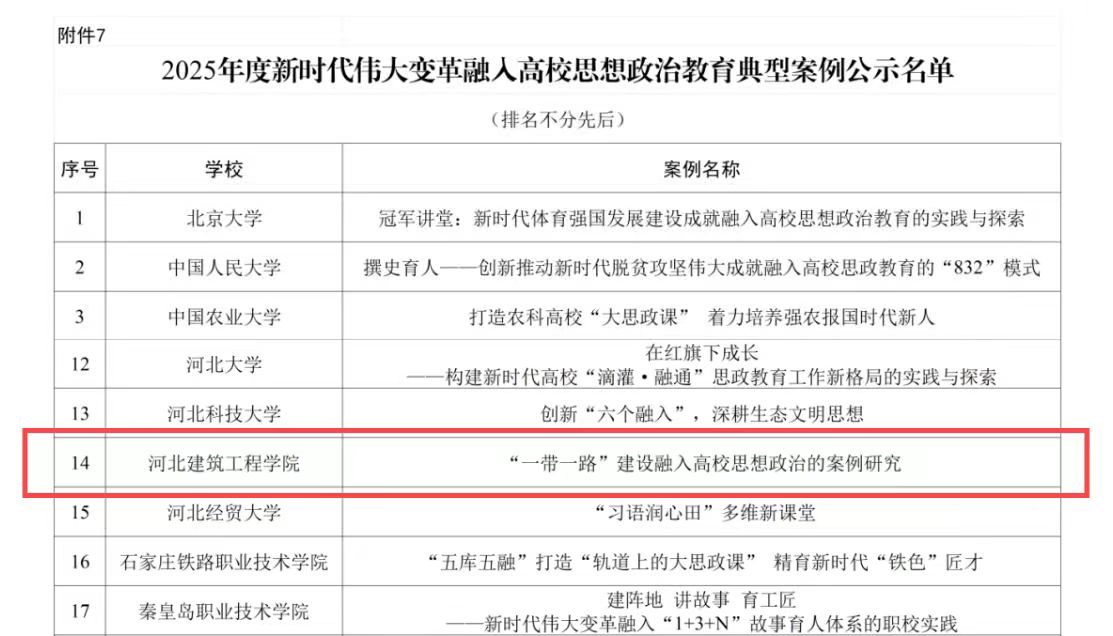 近日,2025年度全國高校思想政治工作質量提升綜合改革與精品建設項目遴選結果公示。我校經濟管理學院黨委書記杜鵬報送的項目《“一帶一路”建設融入高校思想政治的案例研究》入選2025年度全國高校思想政治工作精品項目公示名單。此次項目的成功獲批,不僅標志著學校在思想政治教育領域取得了新的成就,也是對學校全面貫徹黨的教育方針,將立德樹人融入辦學育人各環節、全過程的積極肯定和高度評價。