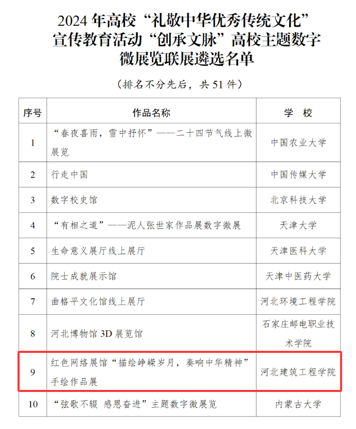 近日,教育部公布了2024年高校“禮敬中華優秀傳統文化”宣傳教育活動結果。河北省高校共計10件作品入選。