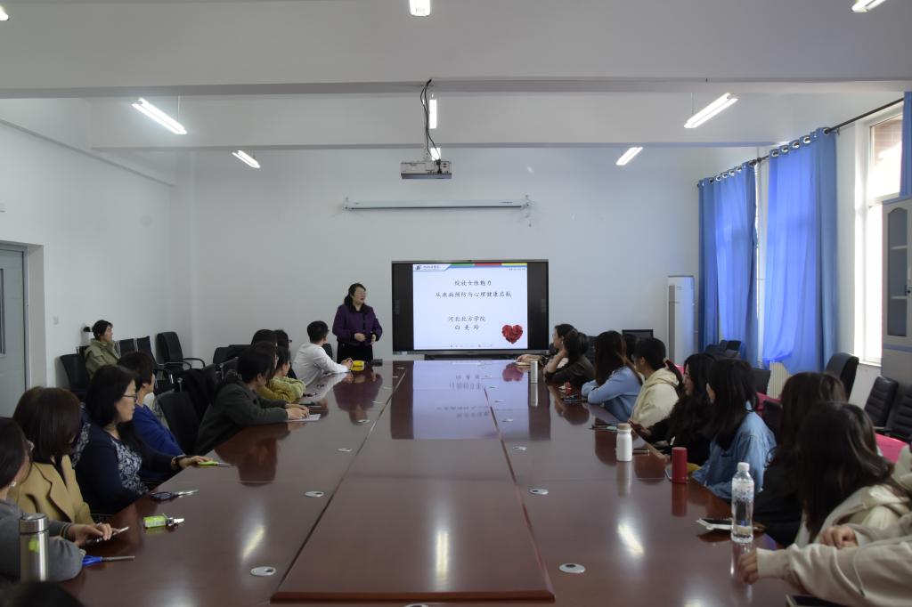 為關(guān)心關(guān)愛女教師身心健康,提升生活品質(zhì),學(xué)院邀請河北北方學(xué)院基礎(chǔ)醫(yī)學(xué)院教授白美玲,為在場的老師們帶來了一場題為“預(yù)防疾病,緩解心理壓力,綻放女性魅力”的專題講座。白美玲從日常飲食、運(yùn)動鍛煉、心理健康等多個角度出發(fā),深入淺出地講解了如何有效預(yù)防常見疾病,同時分享了多種緩解工作壓力、保持心情愉悅的小妙招。她鼓勵大家要關(guān)愛自己,學(xué)會在忙碌中尋找平衡,以更加飽滿的熱情和狀態(tài)投入到工作和生活中,讓女性魅力在健康中自然綻放。