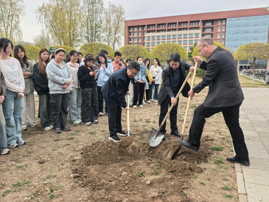 活動中,翁維素與師生攜手種下首棵“育才樹”,并寫下“十年育樹,百年樹人”的銘牌,勉勵學子深扎理想信念之根,汲取知識養分,鍛造堅韌品格,努力成長為堪當民族復興重任的棟梁之材。師生們分工協作,按照挖坑、扶苗、填土、澆灌等工序,種下丁香、海棠、榆葉梅等樹苗。現場還簽署了《樹木認領及成長責任協議書》,承諾接力養護樹木,并在樹根旁埋設“時空膠囊”,封存《致十年后的自己》的成長誓言。