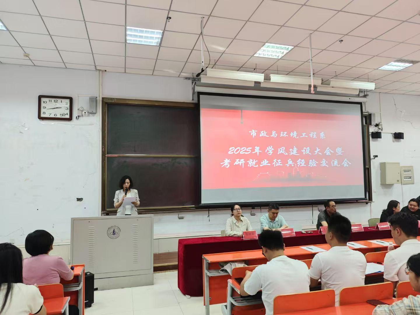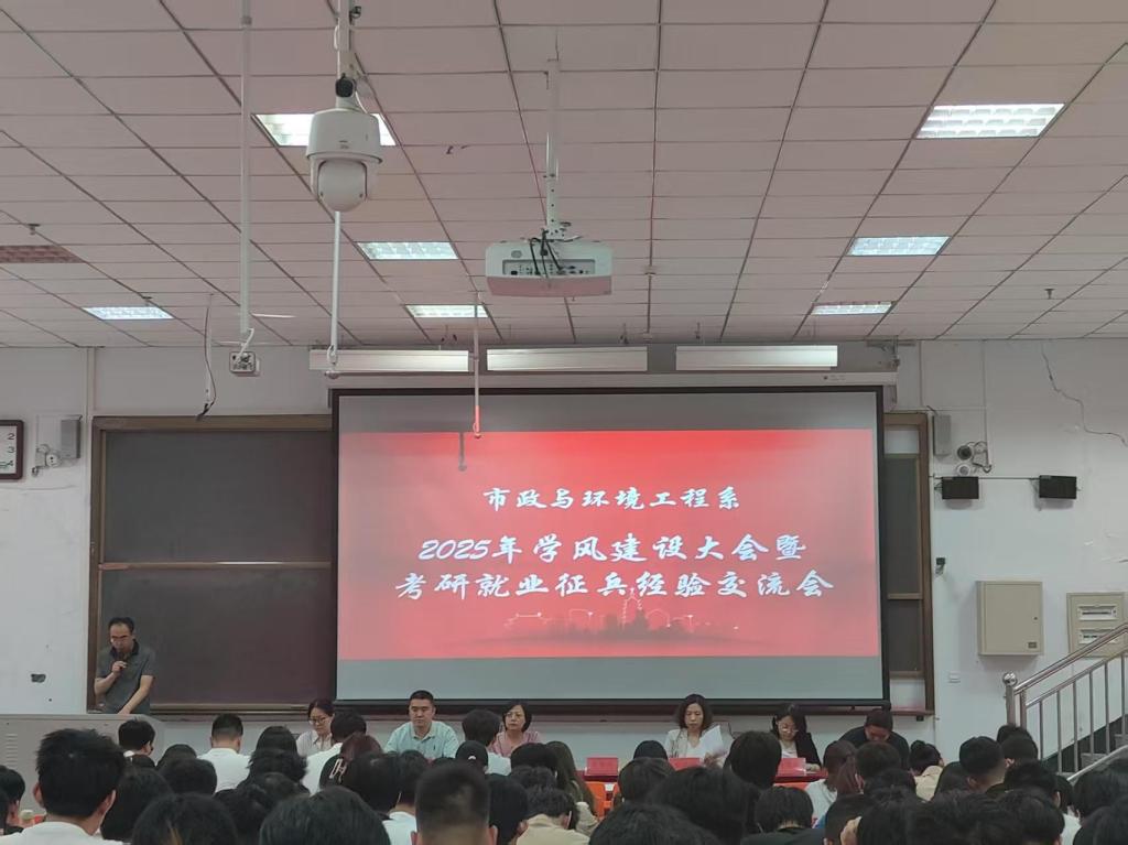 5月27日,市政與環境工程系在明德樓102教室舉辦了2025年學風建設大會暨考研就業征兵經驗交流會。系領導班子成員、輔導員、優秀學生代表及2022級全體本科生參加,會議由副書記王建君主持。