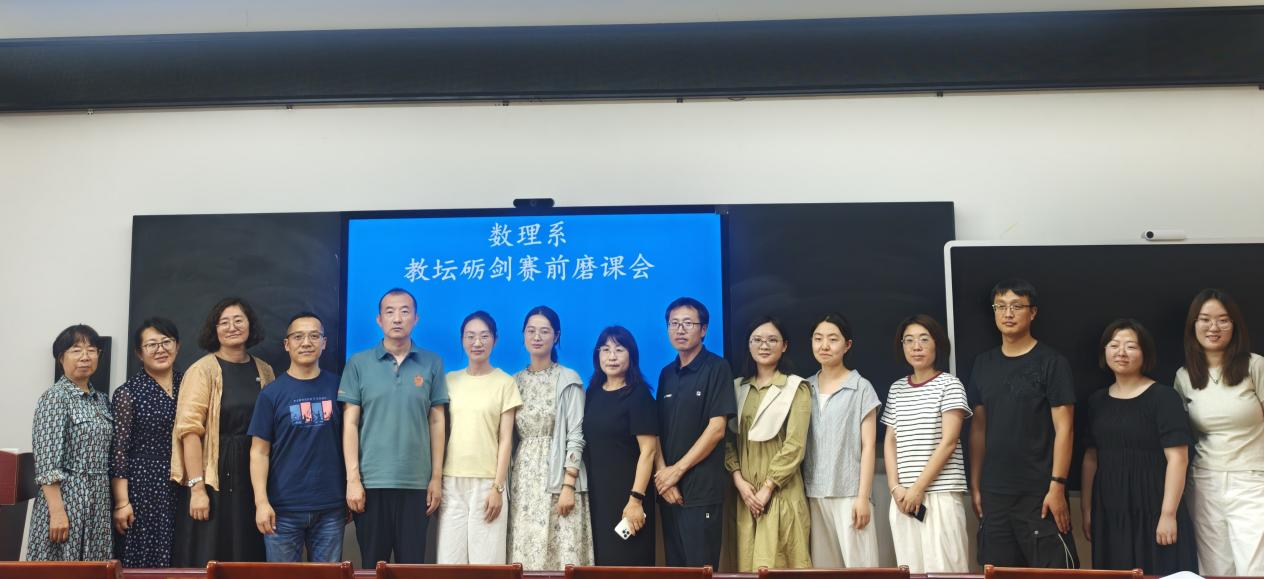 為提升教師教學(xué)能力,全力備戰(zhàn)全市高校青年教師教學(xué)競賽,7月8日,數(shù)理系在崇德樓B312舉辦“教壇礪劍賽前磨課會”,系領(lǐng)導(dǎo)班子成員、督導(dǎo)組成員及青年教師參加此次會議。